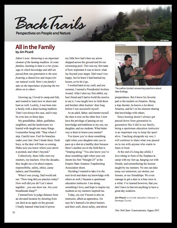 From the New York State Conservationist's Website: Published six times a year, Conservationist is a New York State-focused magazine that is packed with informative and entertaining articles, first-rate photography and stunning artwork. Articles cover a broad range of environmental and natural history related topics, including fishing, hiking, recreation, travel, hunting, and nature studies